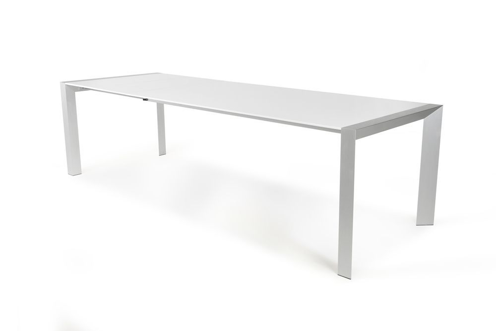 Table a manger extensible en blanc laque et metal Continental? 270 cm.